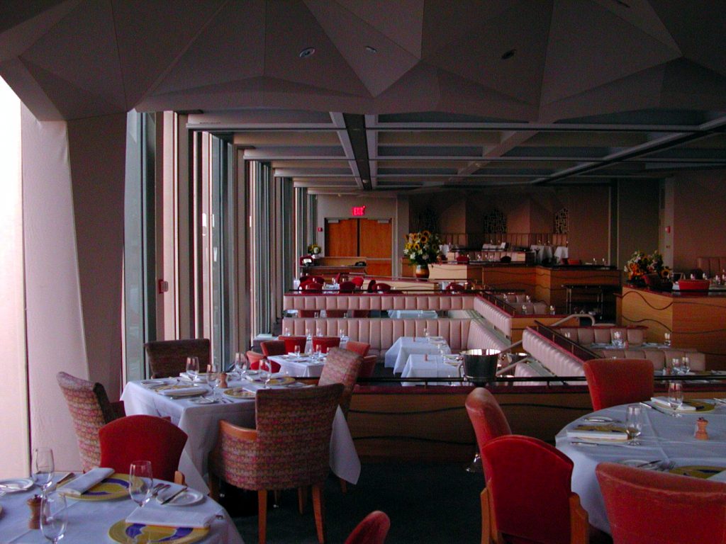 Located on the 106th and 107th floors of the North Tower, Windows on the World was a collection of dining, meeting and entertainment venues. There was the main restaurant, a smaller American steakhouse and a bar. In its last full year of operation, Windows on the World became the highest-grossing restaurant in America.